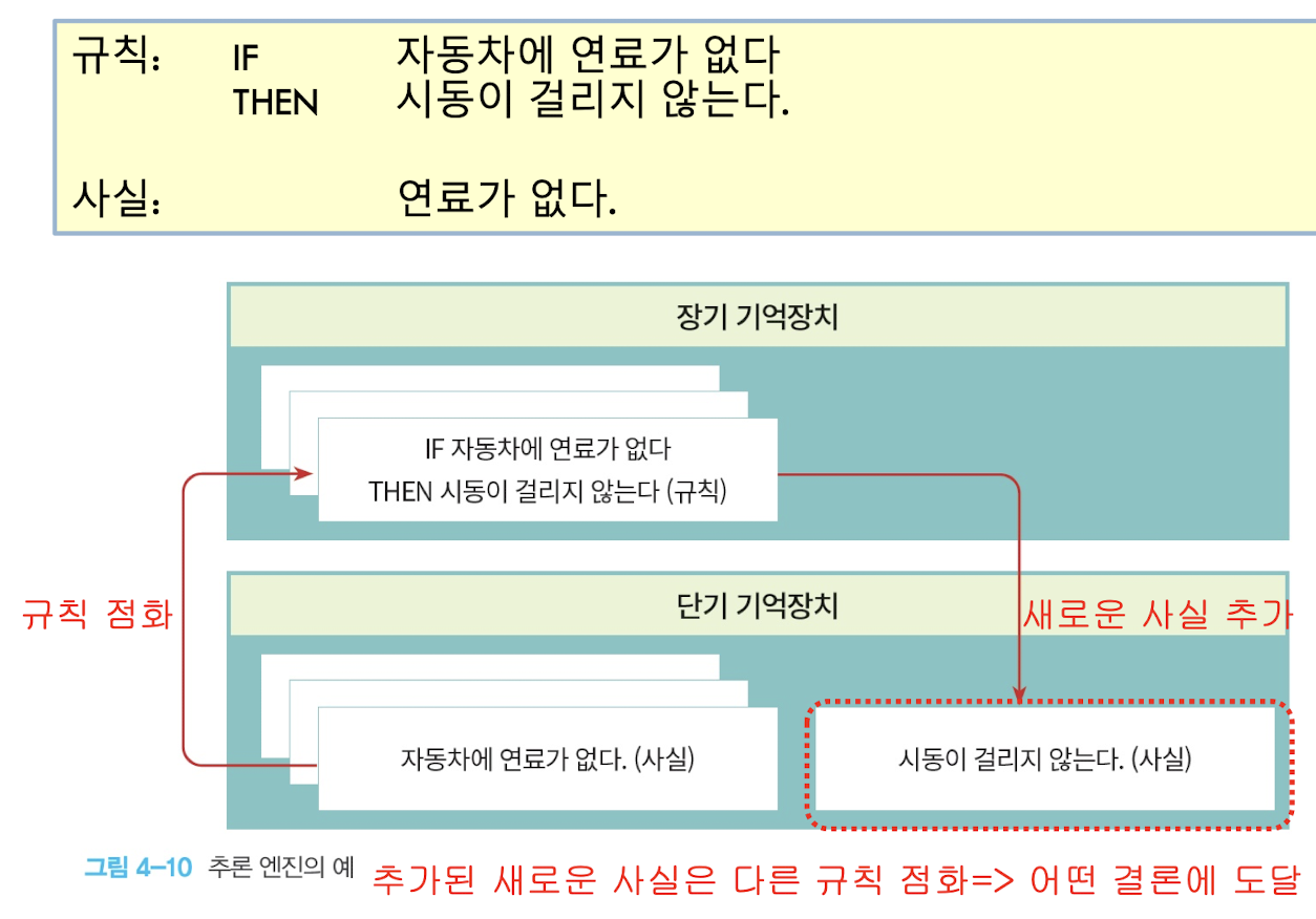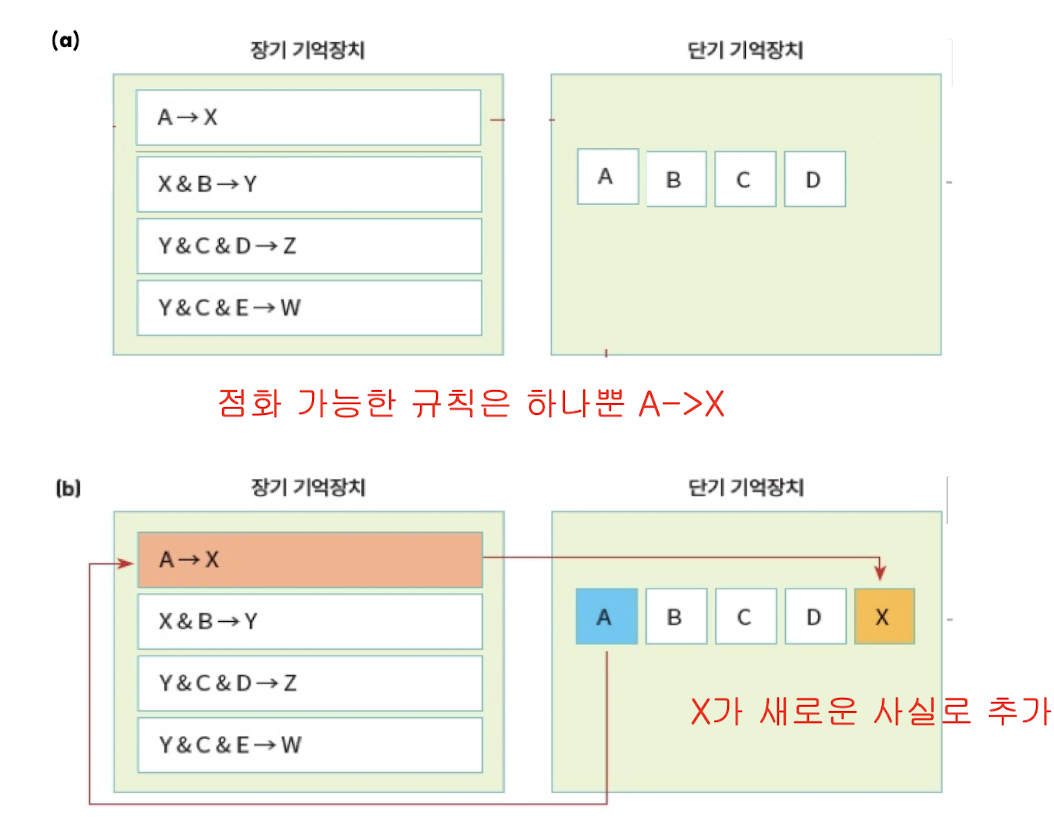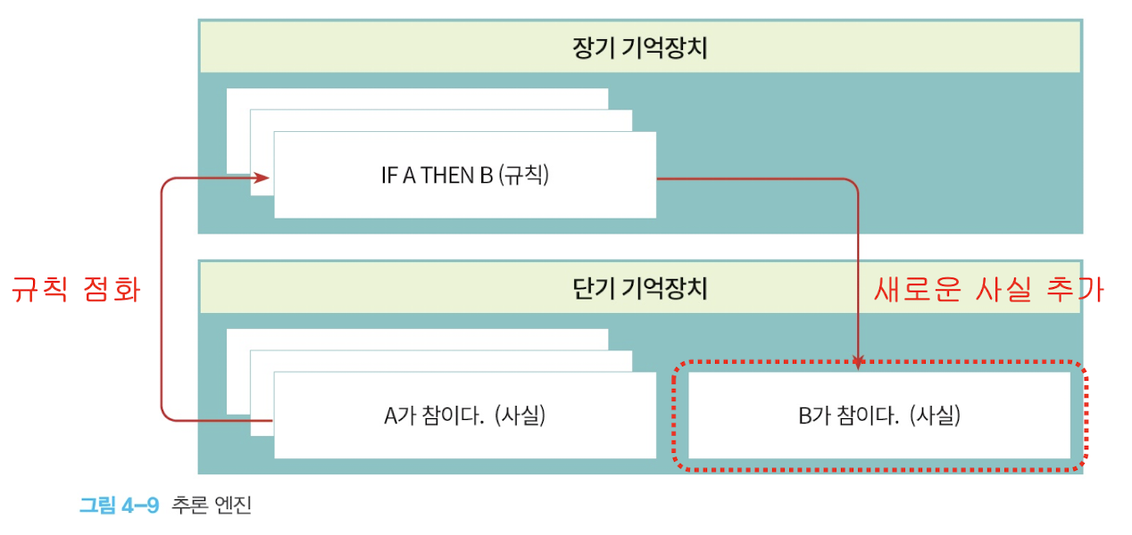 추론 엔진은 장기기억장치의 규칙들이 단기저장장치의 사실들과 일치하는지를 비교