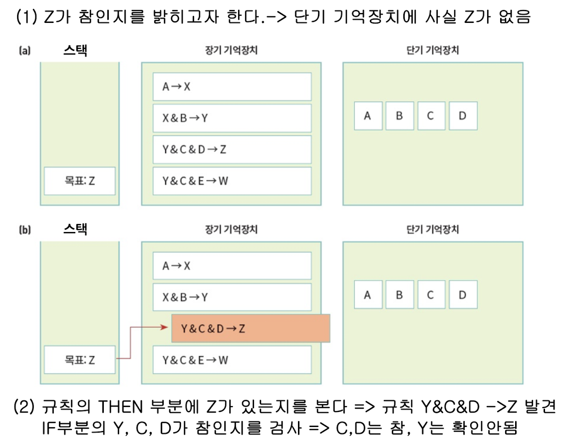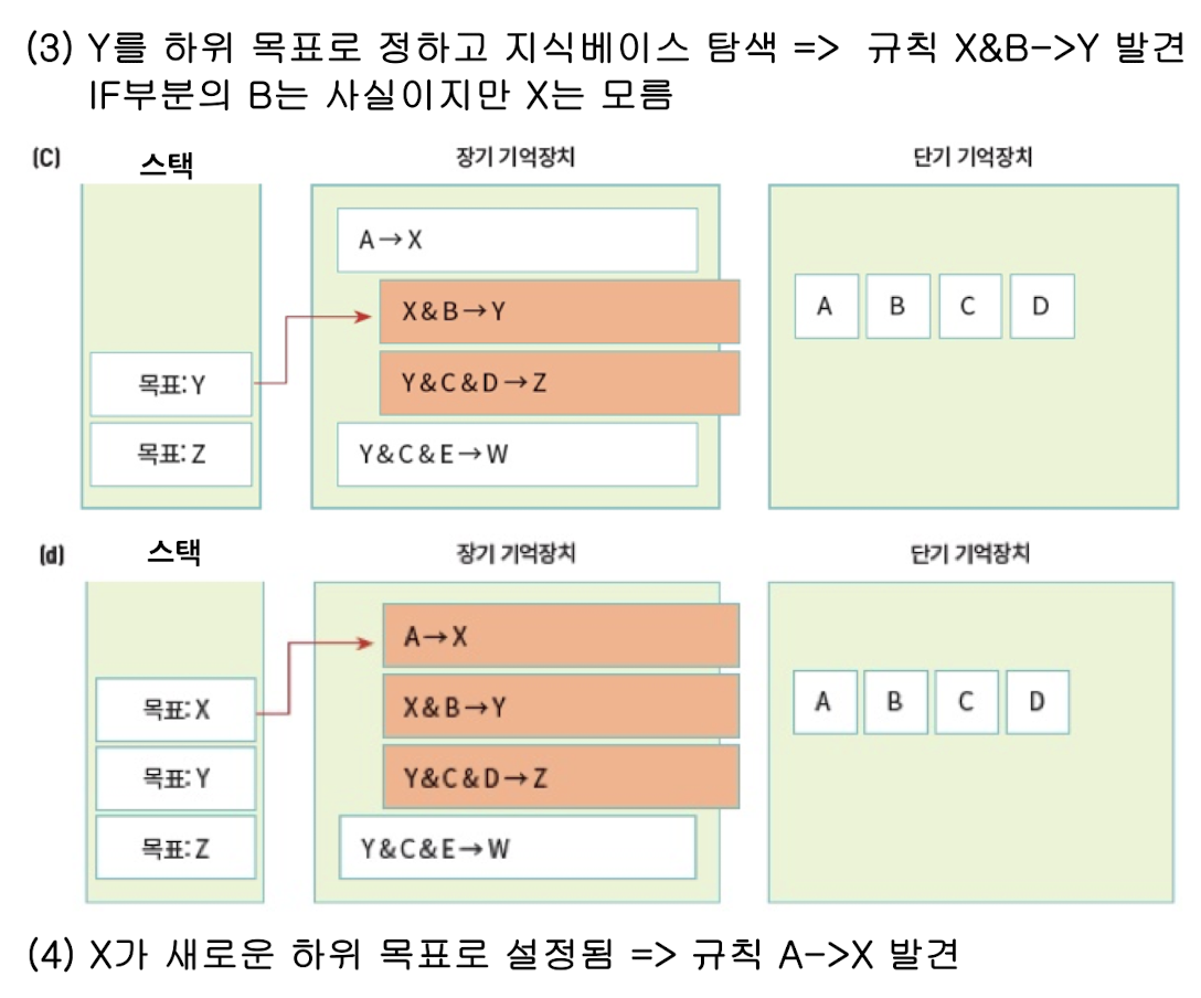 -IF 부분이 만족되지 않으면, 이것을 하위목표로 선정하여 다시 지식베이스를 탐색