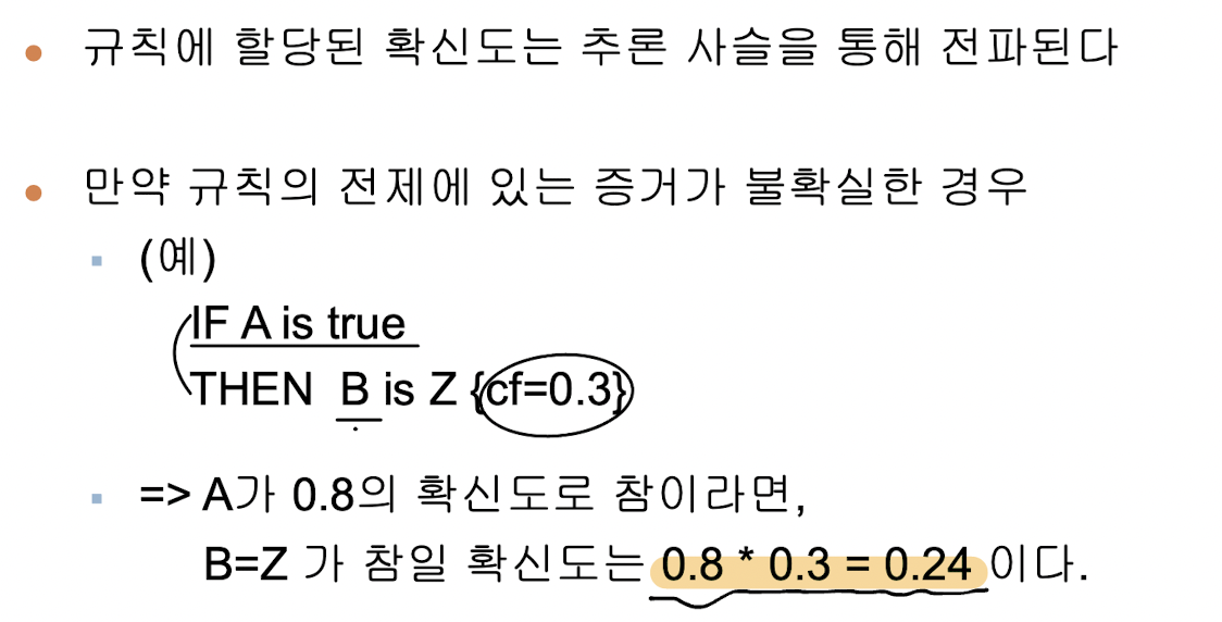 확신도는 MYCIN에서 사용 (MYCIN: 박테리아 감염 진단, 치료하는 전문가 시스템)